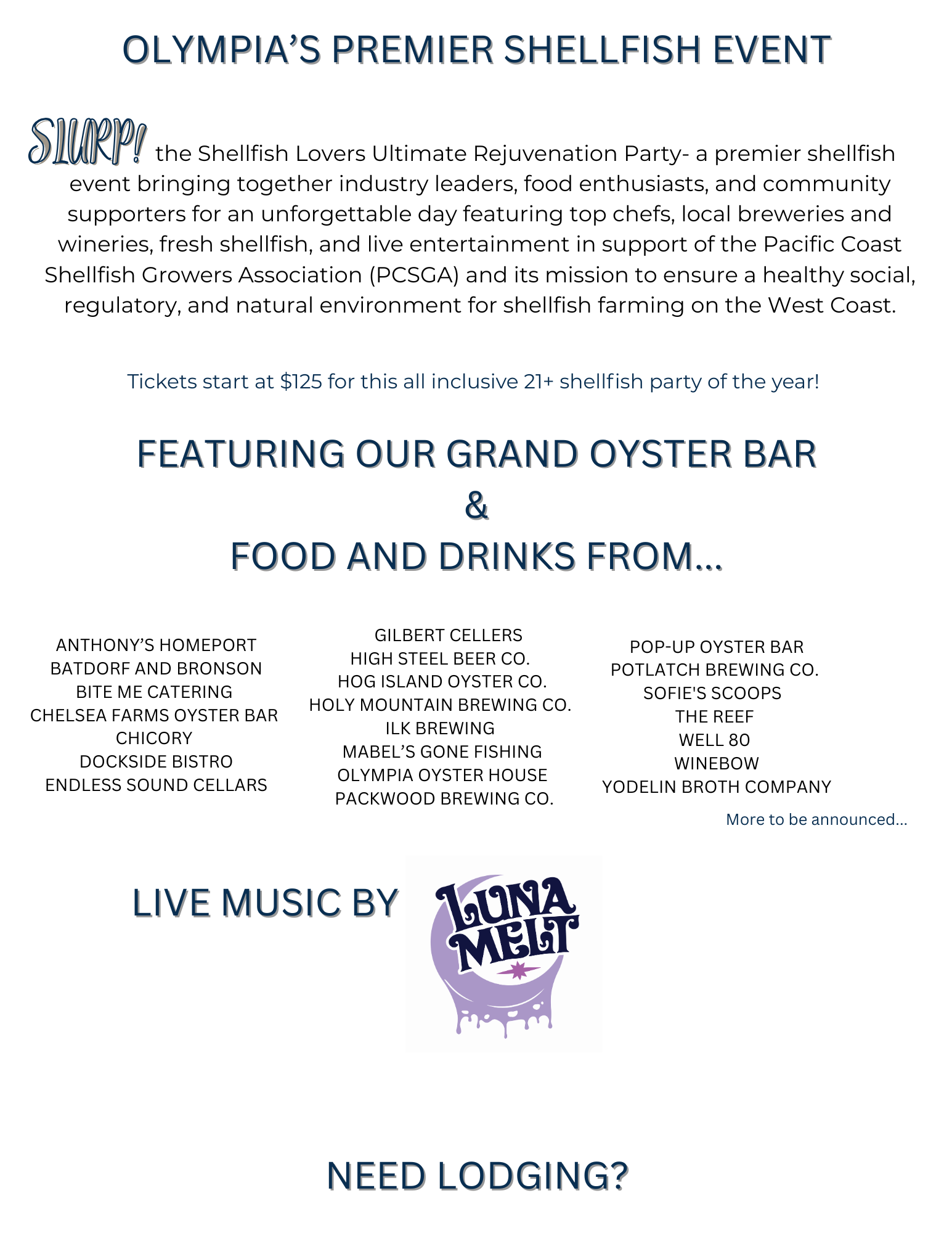 Located on historic and picturesque Budd Inlet in South Puget Sound providing a beautiful backdrop for SLURP!
